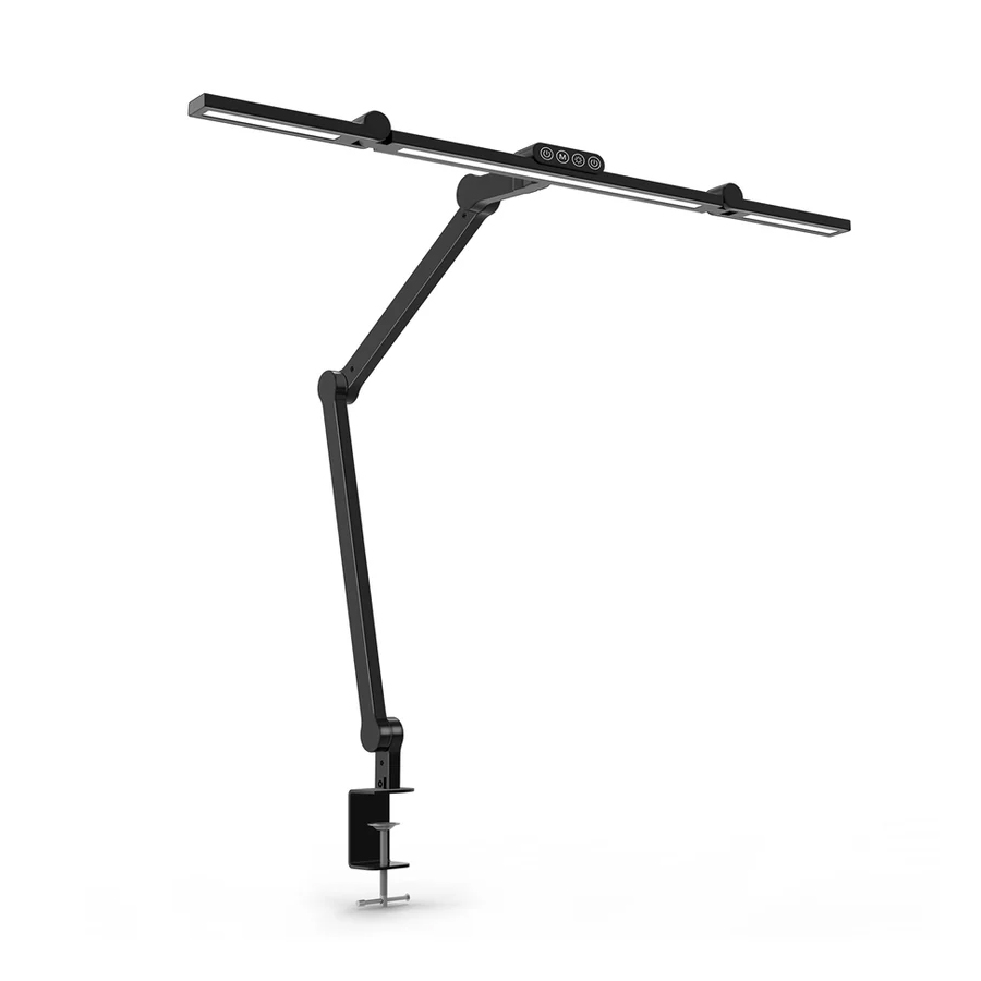 Durch die praktische Tischklemme benötigt die Lampe kaum Platz auf dem Schreibtisch und passt auf Tischplatten mit einer Stärke von bis zu 6 cm. Das hochwertige Aluminium-Design in elegantem Schwarz fügt sich nahtlos in jede moderne Büro- oder Home-Office-Einrichtung ein.