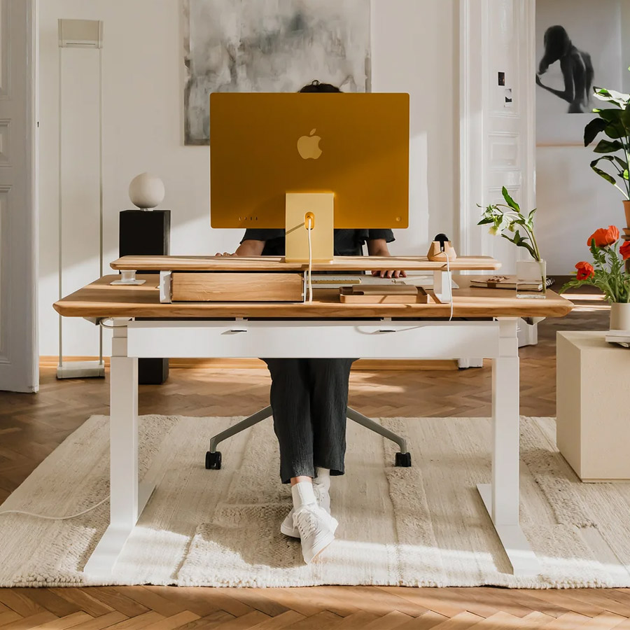 Der Standing Desk Pro ist eine neue Dimension der Höhenverstellung von Schreibtischen. Der ikonische verstellbare Schreibtisch von Oakywood wurde mit einem intuitiven, minimalistischen Bedienfeld ausgestattet, das die Höhenverstellung des Schreibtisches noch einfacher macht: Sie müssen nicht einmal auf das Bedienfeld schauen. Ein großer Höhenbereich, ein Antikollisionssensor, die Möglichkeit, 4 Einstellungen zu speichern und Benachrichtigungen zu erhalten, wenn es an der Zeit ist, in eine stehende Position zu wechseln - all dies setzt neue Maßstäbe für Ergonomie und Komfort am Arbeitsplatz.