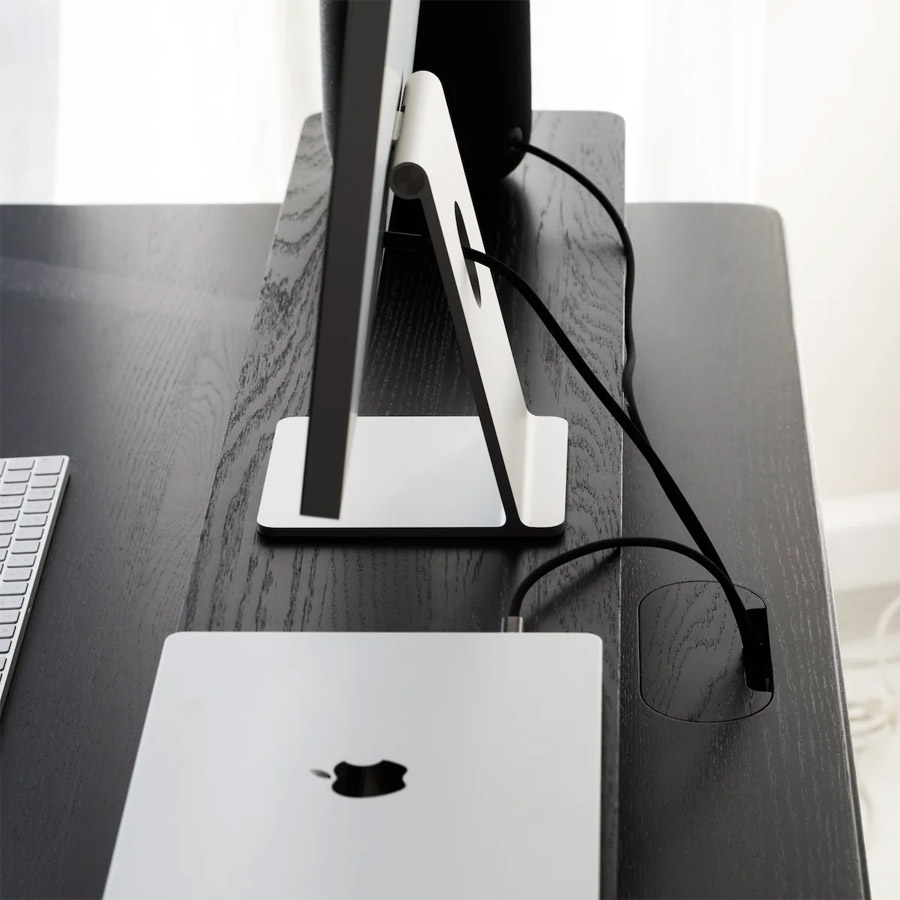 - Höhenverstellbares Gestell aus pulverbeschichteten Stahl, wahlweise in Schwarz oder Weiß