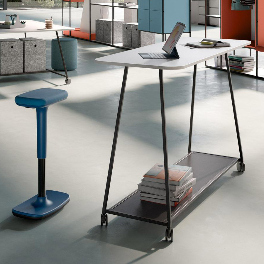 Die offene Unterkonstruktion bietet Platz für kabelintegrierende Media-Module und Zubehör wie Whiteboards oder Projektwagen – alles nach Bedarf kombinierbar.