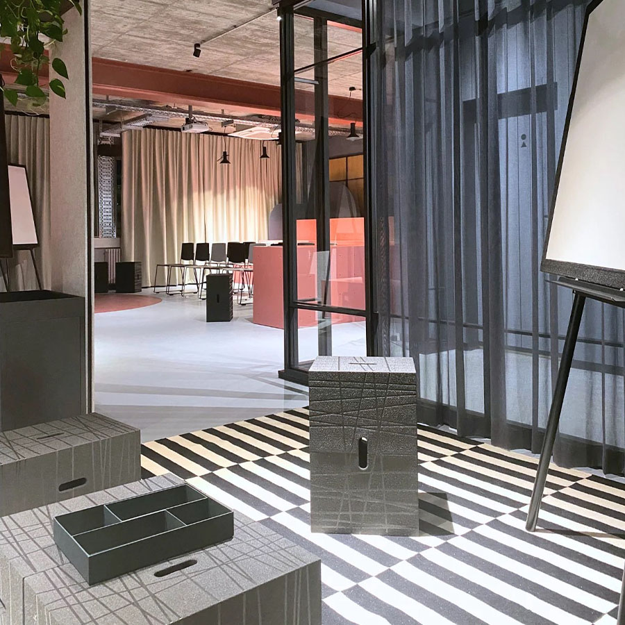 Aus dieser langjährigen Entwicklungs- und Projekterfahrung ist auch der Design-Hocker Xbrick® entstanden: ein multifunktionales Möbel zum Sitzen, Stellen Legen, das wir selbst herstellen, vertreiben und mit unserem internationalen Netzwerk vermarkten. Das wir ständig mit intelligentem Zubehör erweitern – und das wir immer wieder messen an unseren eigenen Ansprüchen an Funktionalität, Langlebigkeit und Nachhaltigkeit.