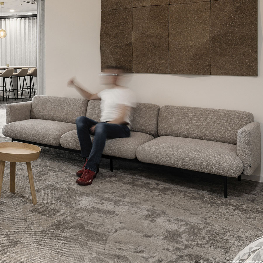 Stellen Sie sich vor, wie Sie sich während einem langen Tag im Büro in den weichen Polstern des Fora Sofas entspannen. Egal ob für kurze Pausen zum Entspannen oder für informelle Besprechungen unter Kollegen, die behagliche Ausstattung und die ruhige Atmosphäre des Sofas schaffen den perfekten Raum für den richtigen Wohlfühlfaktor.