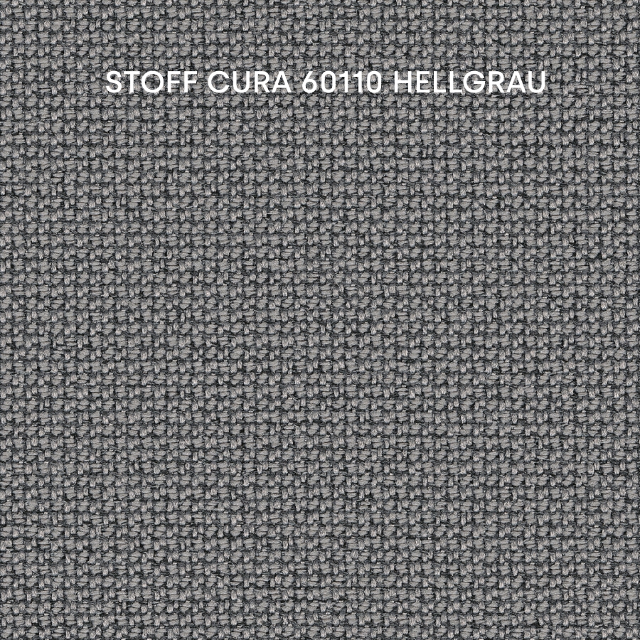 Cura ist ein zweifarbiger Stoff, der zu 98% aus post-consumer recyceltem Polyester besteht. Er hat eine matte, leicht unregelmäßige und natürlich wirkende Textur, bei der die dunklen, darunter liegenden grauen Fasern einen dezenten, aber lebendigen Melange-Effekt erzeugen.