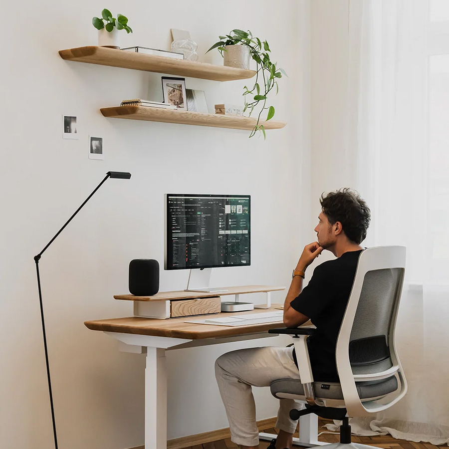 Ein Hängeregal ist eine großartige Möglichkeit, Ihre Wände zu nutzen und eine vertikale Organisationsstruktur zu schaffen. Es hilft Ihnen, all Ihre wichtigen Accessoires effizienter zu organisieren, und ist gleichzeitig ein einzigartiges dekoratives Element, das die Einrichtung Ihres Heimbüros ergänzt. Wählen Sie eine passende Abmessung der Regale an, um eine effektive und funktionelle Anordnung zu schaffen.