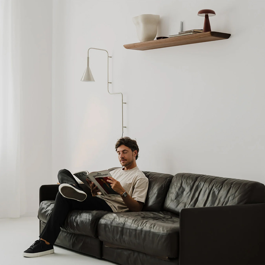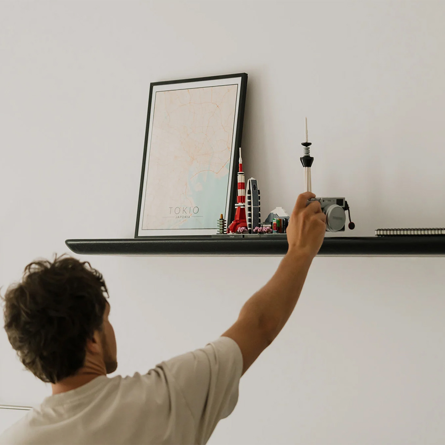 Das Regal aus Massivholz wurde so entworfen, dass es eine kohärente Komposition mit dem Schreibtisch bildet: Seine Kanten sind mit Oakywood's Original-Fräsungen versehen, die seine Leichtigkeit noch verstärken.