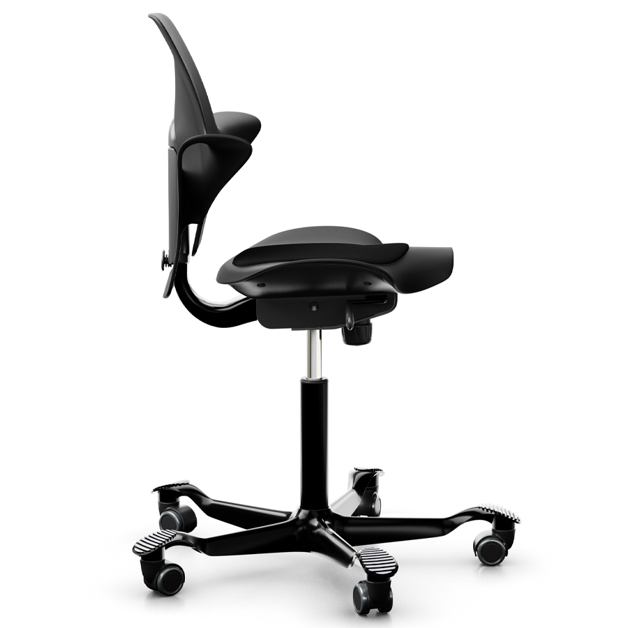 Der HAG Capisco ist mit drei verschiedenen Gasfedern erhältlich. Die 150 mm Gasfeder ist für normale Arbeitsplätze und Personen mit einer Körpergröße unter 165 cm geeignet. Die 200 mm Standard-Gasfeder wird für Personen mit einer Körpergröße über 165 cm empfohlen und kann für das normale Sitzen als auch erhöhter Sitzposition genutzt werden. Die 265 mm Gasfeder ist die optimale Wahl für Steh-Sitz-Arbeitsplätze.