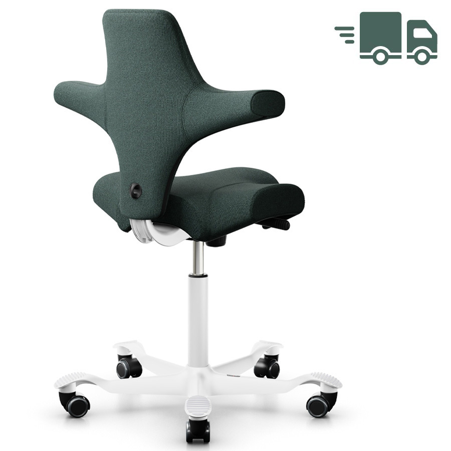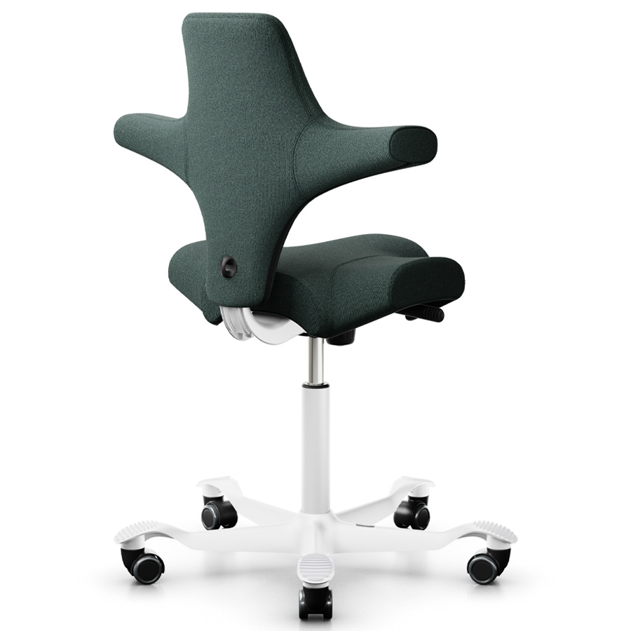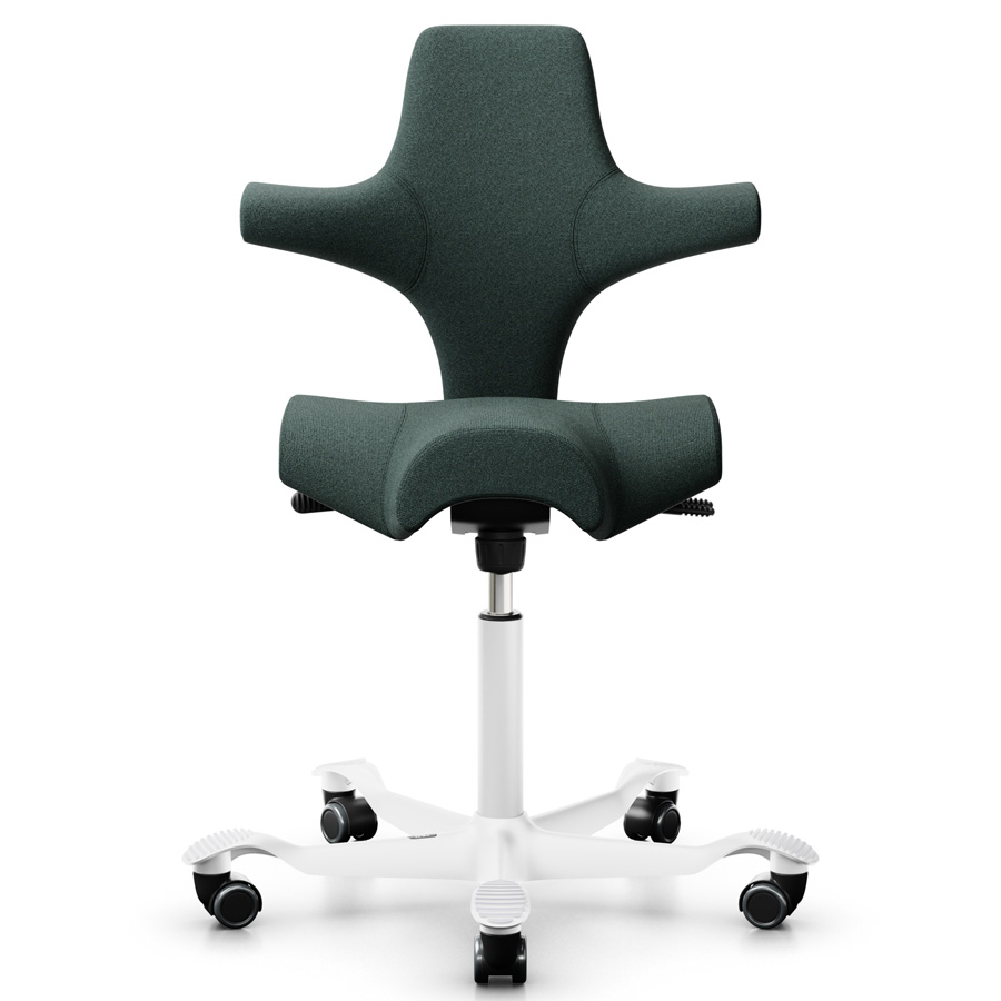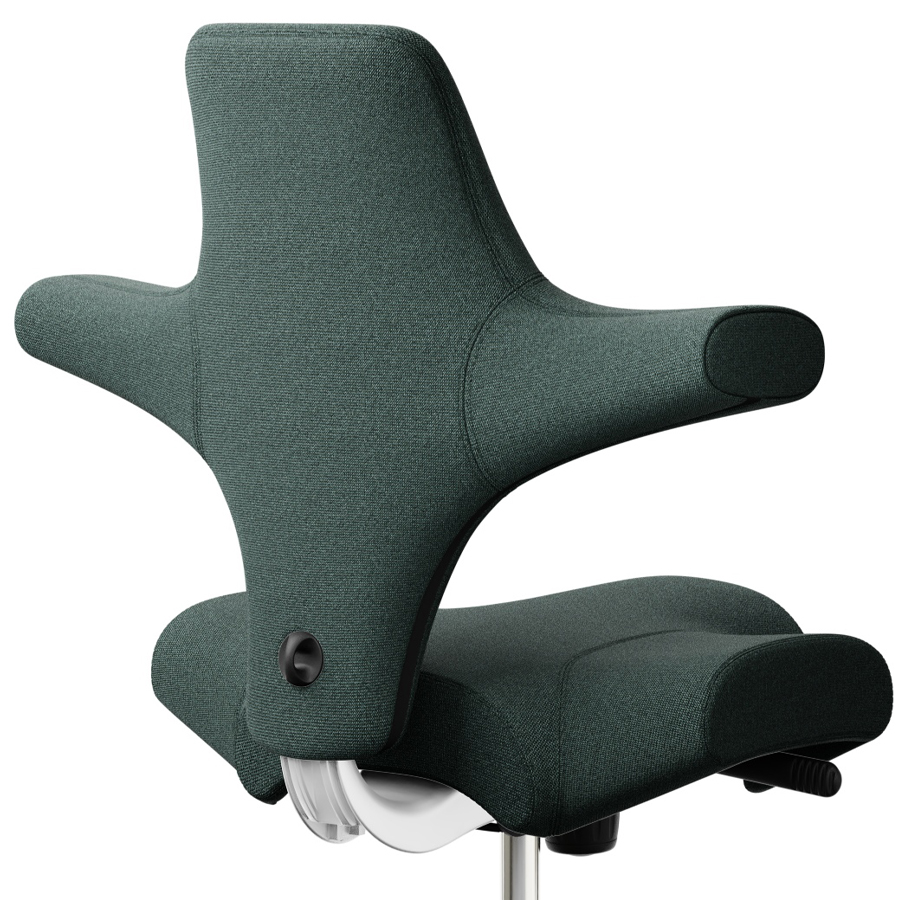 - Sattelform: Der Sitz des Capiscos ermöglicht eine Vielzahl von Sitzpositionen: Nach vorne, seitlich und rückwärts. Dies fördert Bewegung und Flexibilität am Arbeitsplatz