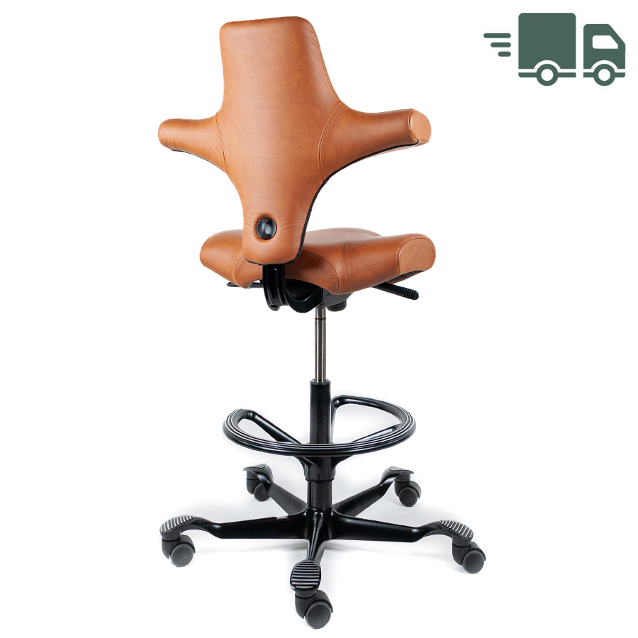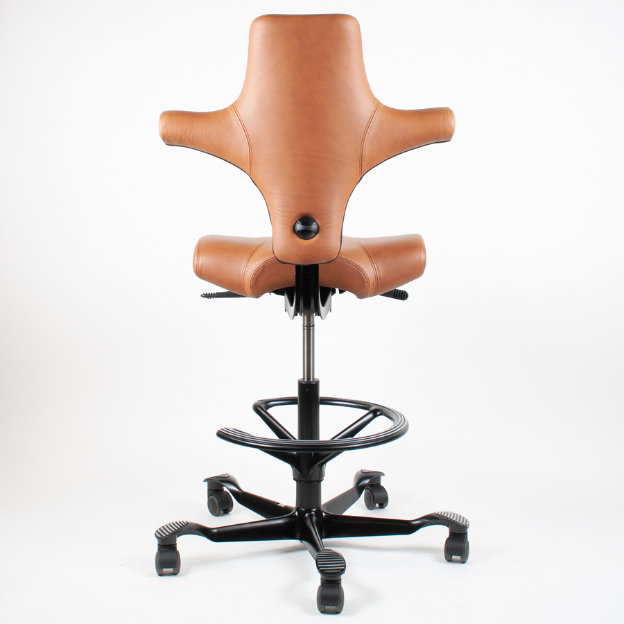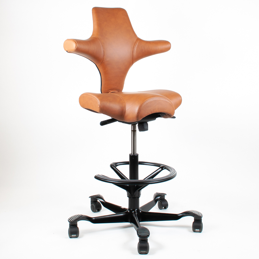 - Sattelform: Der Sitz des Capiscos ermöglicht eine Vielzahl von Sitzpositionen: Nach vorne, seitlich und rückwärts. Dies fördert Bewegung und Flexibilität am Arbeitsplatz