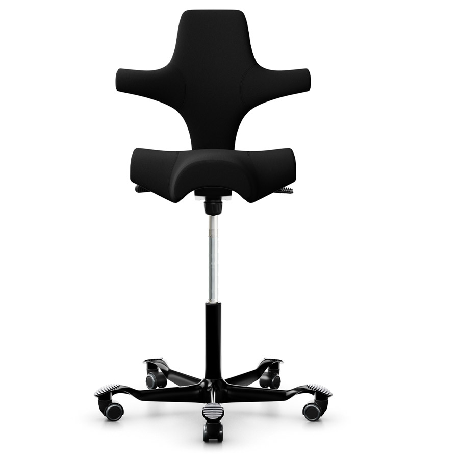 - Sattelform: Der Sitz des Capiscos ermöglicht eine Vielzahl von Sitzpositionen: Nach vorne, seitlich und rückwärts. Dies fördert Bewegung und Flexibilität am Arbeitsplatz