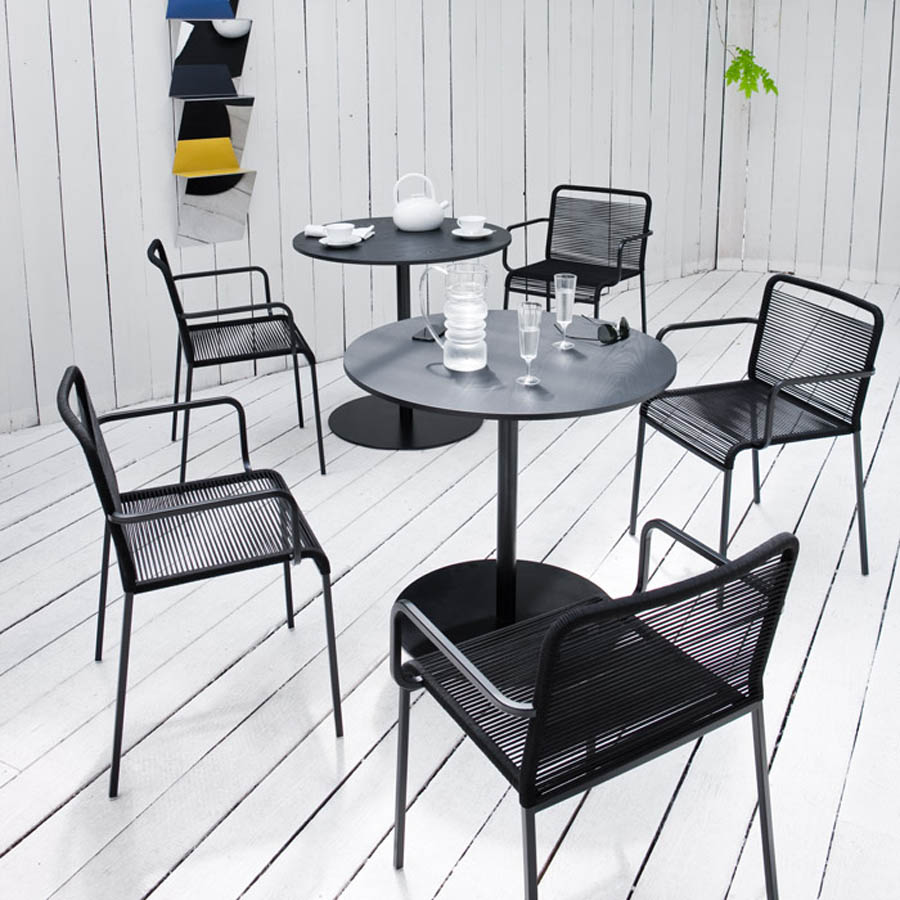 lapalma ARIA S43 Gartenstuhl mit Armlehnen | Sitzfläche schwarz | Vierfuß-Gestell schwarz