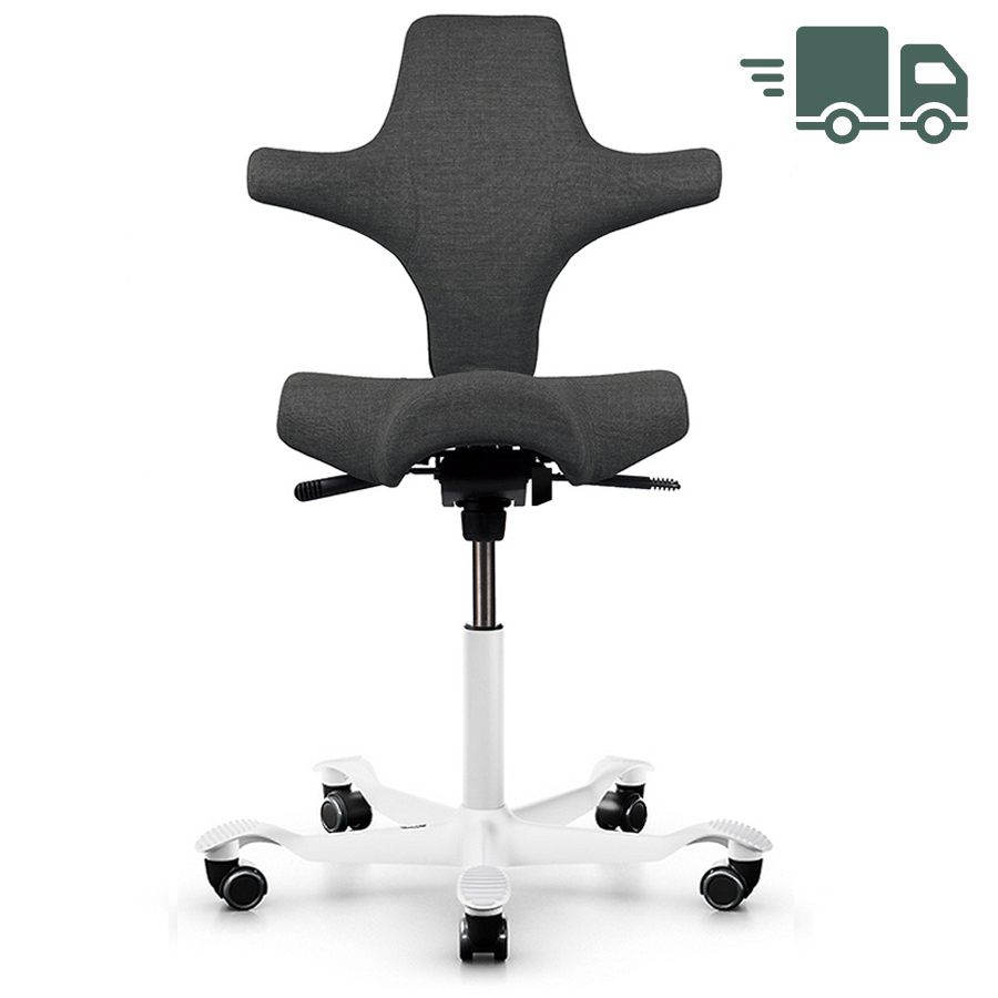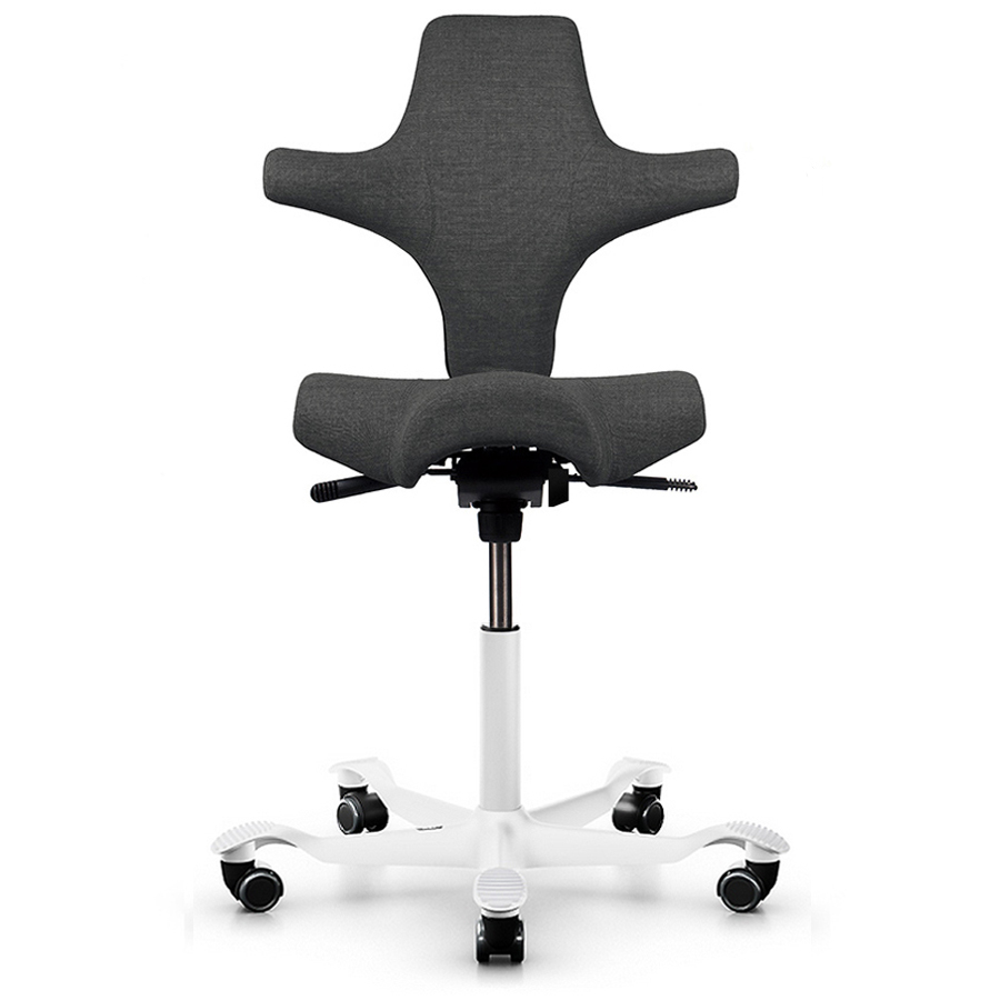 - Sattelform: Der Sitz des Capiscos ermöglicht eine Vielzahl von Sitzpositionen: Nach vorne, seitlich und rückwärts. Dies fördert Bewegung und Flexibilität am Arbeitsplatz