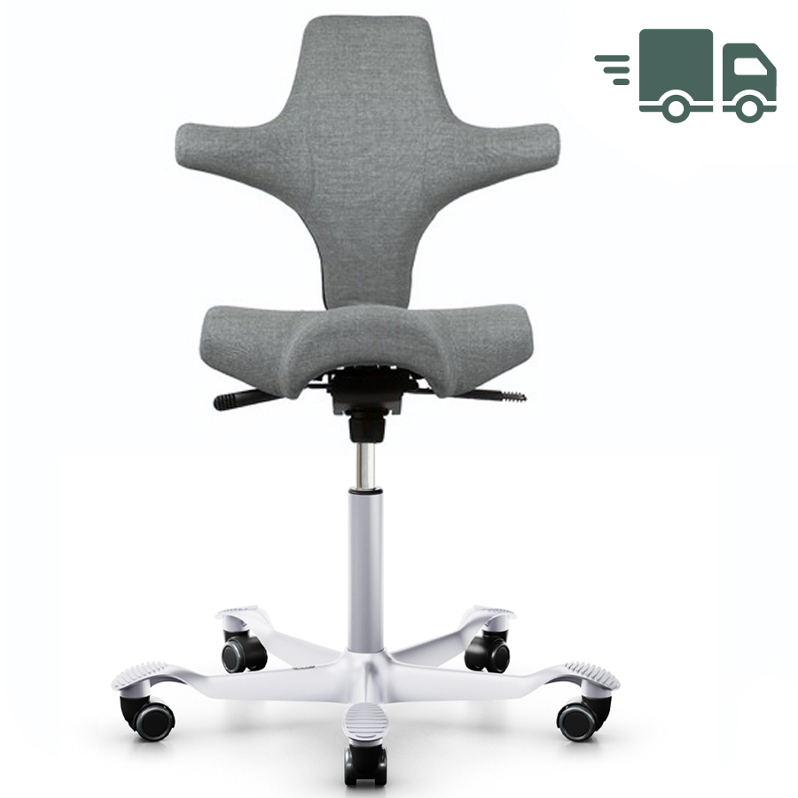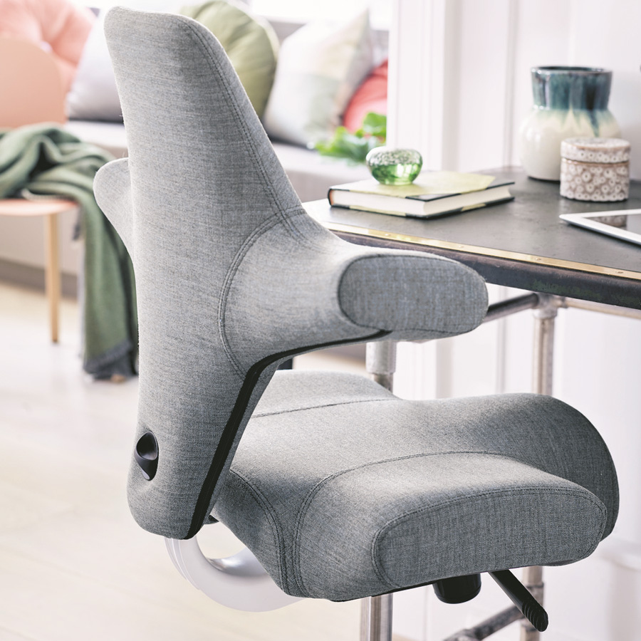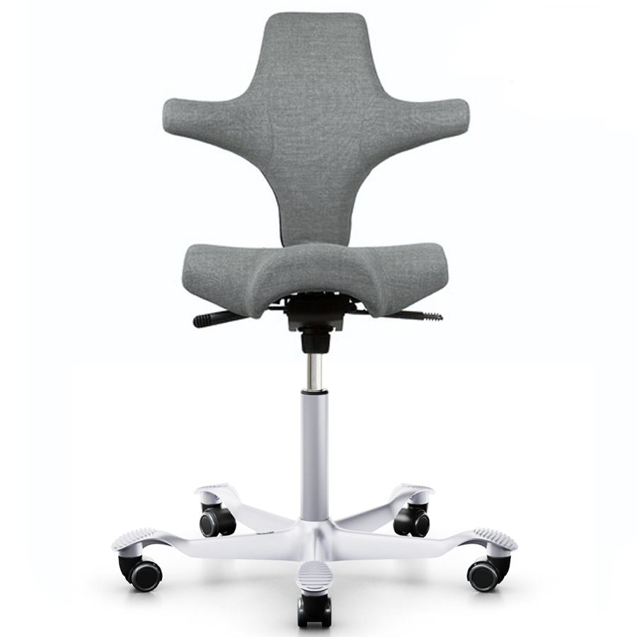 - Sattelform: Der Sitz des Capiscos ermöglicht eine Vielzahl von Sitzpositionen: Nach vorne, seitlich und rückwärts. Dies fördert Bewegung und Flexibilität am Arbeitsplatz