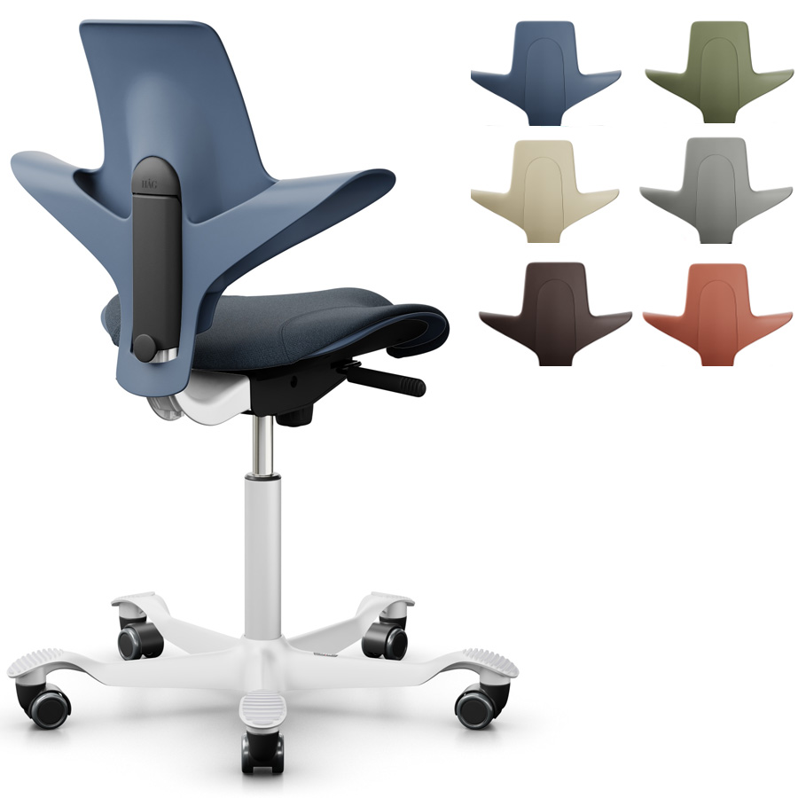 - Sattelform: Der Sitz des Capiscos ermöglicht eine Vielzahl von Sitzpositionen: Nach vorne, seitlich und rückwärts. Dies fördert die Bewegung und Flexibilität am Arbeitsplatz