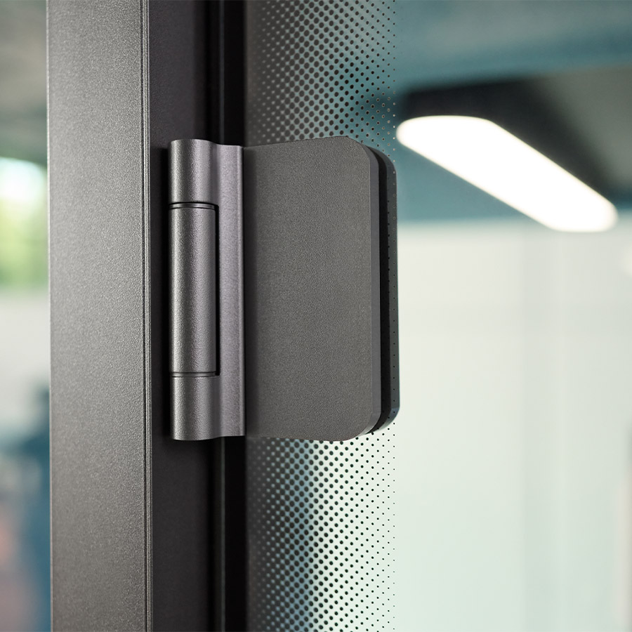 - Tür: Aus gehärtetem Akustikverbundglas mit Griff